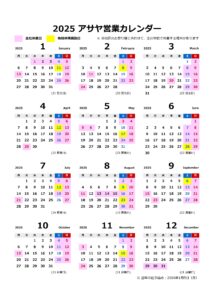 アサヤ営業カレンダー2025